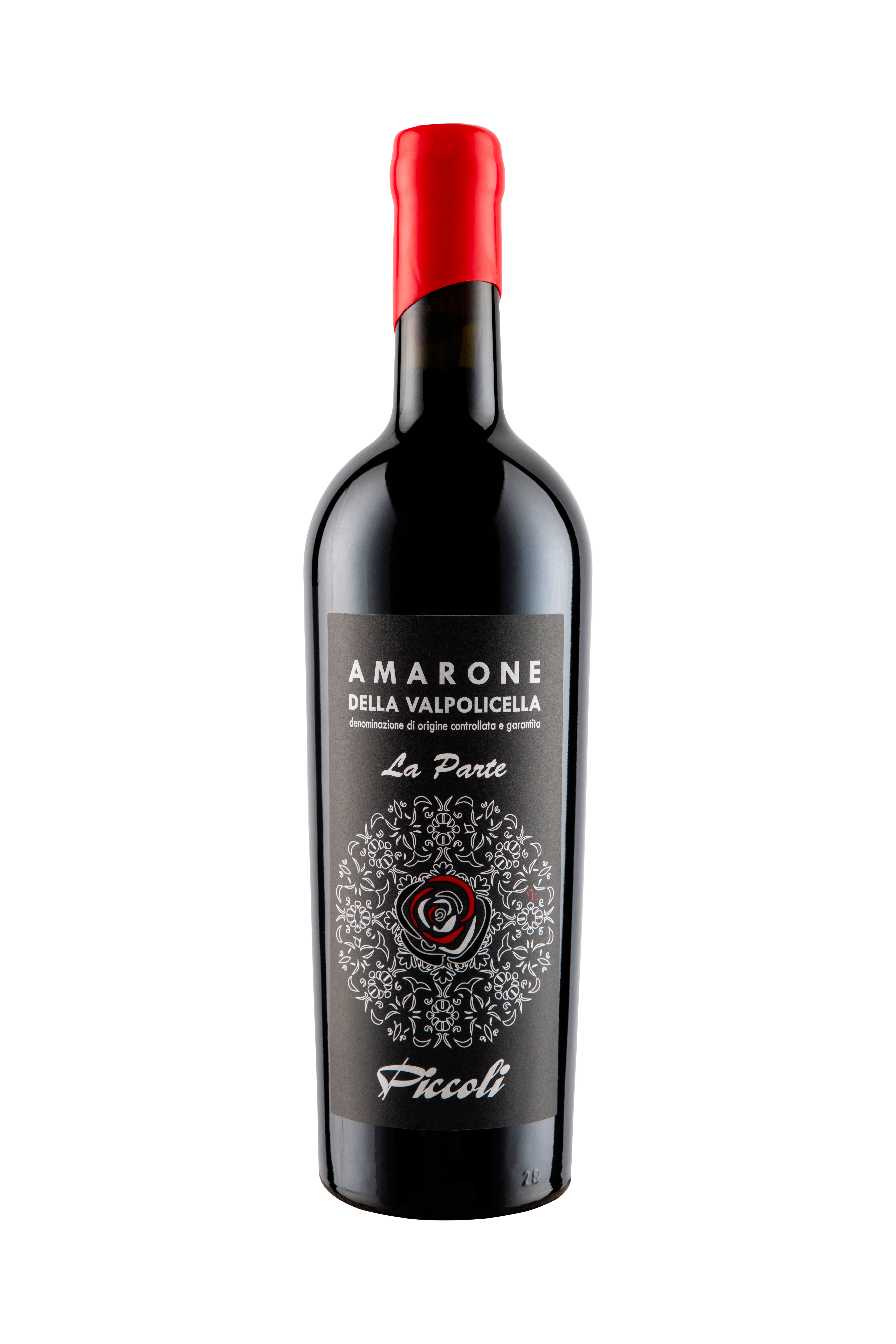Nur die besten handverlesenen Trauben des familieneigenen Weinberges Monte La Parte finden den Weg in den Trocknungsraum der modernen Kellerei Piccoli. Diese befindet sich in Sichtweite des Wohnhauses der Familie Piccoli und ist architektonisch sehr gelungen in den Fels gefräst worden. Der ausschließlich auf natürliche Weise stattfindende Trocknungsprozess im gut durchlüfteten Dachboden, ohne Klimageräte, dauert mindestens drei Monate. Am Ende dieser Trockenzeit haben die Trauben circa 35% ihres Gewichts verloren. Es erfolgt eine kalte Mazeration, bei der die zerkleinerten Trauben 15 Tage im eigenen Saft ziehen, anschließend erfolgt eine langsame, circa einmonatige Fermentation in Edelstahltanks bei kontrollierten Temperaturen unter 20°C. Der spätere Amarone reift anschließend mindestens fünf Jahre in 3000l fassenden französischen Eichenfässern, einige weitere Monate vor der Abfüllung in Flaschen erneut in Edelstahltanks, und zu guter Letzt ein weiteres Jahr auf der Flasche. Endlich zum Genuss freigegeben, fließt der Amarone della Valpolicella DOCG Monte La Parte rubinrot mit orangefarbenen Reflexen aus der Flasche. Er duftet nach reifen Früchten wie schwarzen Kirschen und Dörrpflaumen mit Anklängen nach Minze und Eukalyptus. Am Gaumen entfaltet dieser vor Kraft nur so strotzende Rotwein aus Venetien seine starken Aromen nach roten Beeren, Lakritz und Tabak und ist gleichzeitig samtweich, dicht und körperreich mit eleganten Tanninen und einem langen Abgang. Wildgerichte, rotes Fleisch, Salami oder ein alter Käse sind ebenbürtige Partner für dieses außergewöhnliche Schwergewicht aus Venetien, der aufgrund seiner ausgefallenen Herstellungstechnik seinen Platz unter den Spitzenweinen Italiens bereits eingenommen hat!